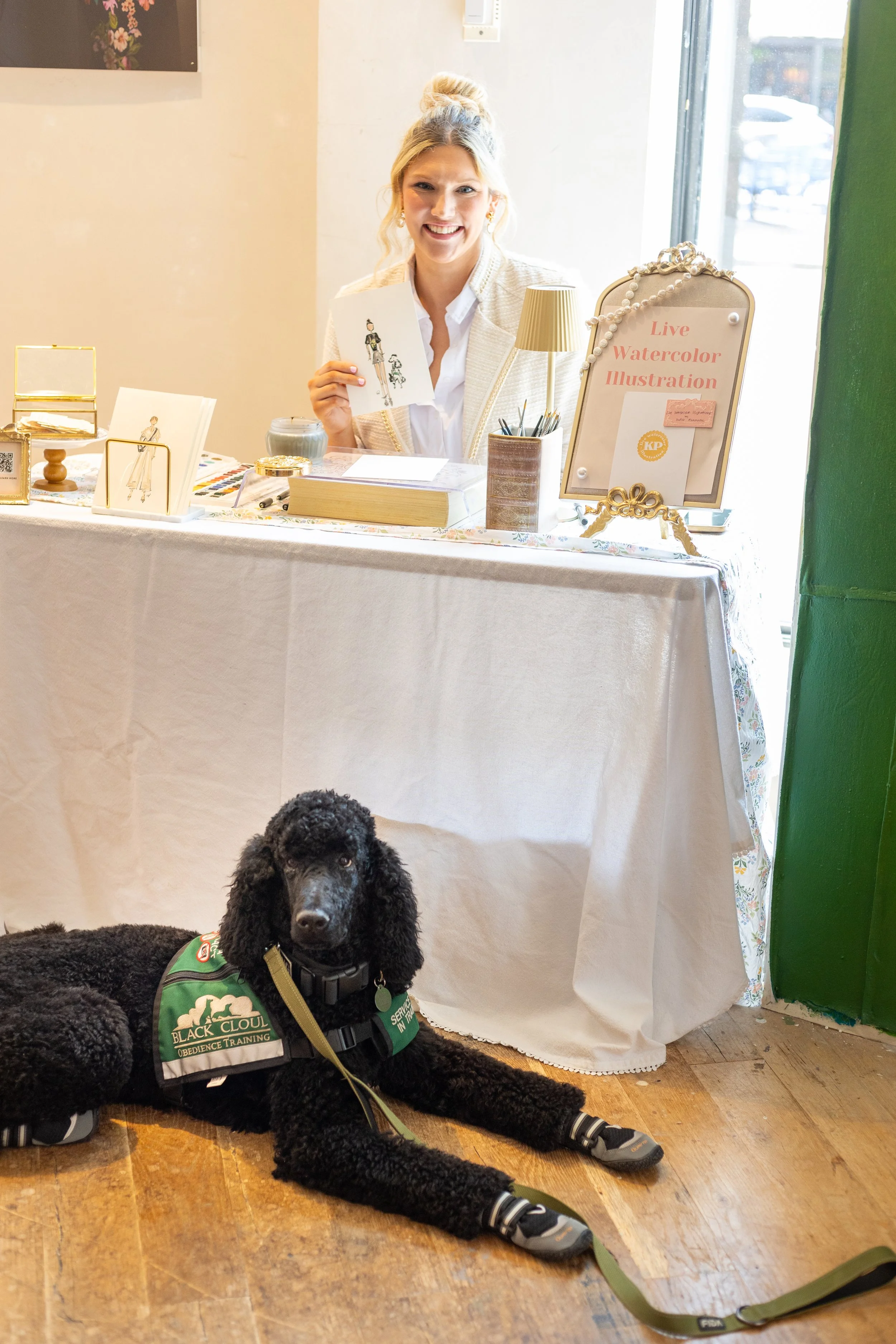 I create live watercolor fashion portraits at events such as wedding receptions, retail gatherings, bridal and baby showers, or special occasions.